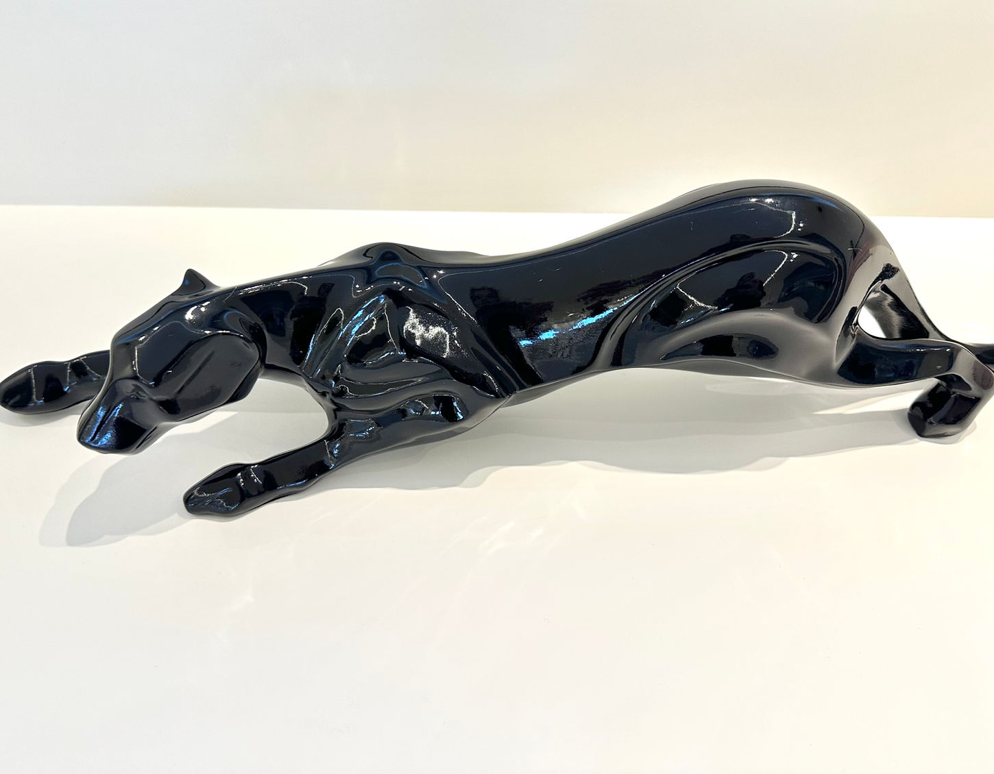 A custom-crafted marble shark sculpture serves as a striking design centerpiece—bold yet timeless. Marble-topped side tables and handpicked accessories further enhance the room's sophisticated aesthetic.